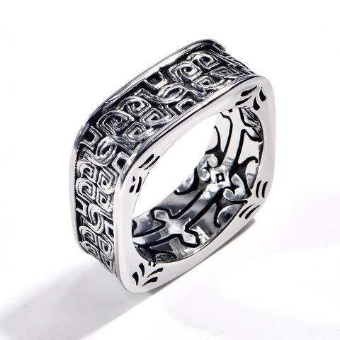 Anello-gioco di potere maschile stile retrò piatto rotondo uomo antico caratteristico dito dominante anello in titanio gioielli fatti a mano