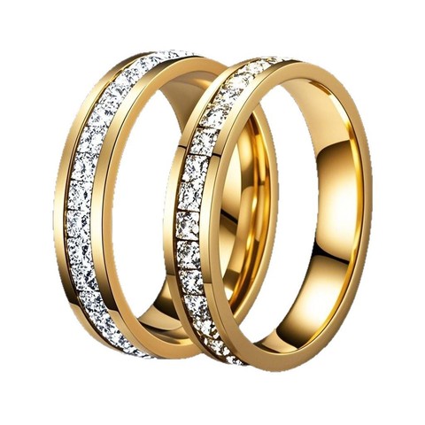 Nhẫn cưới đính kim cương vàng, Nhẫn đính hôn đơn giản và thời trang, nhẫn thép titan