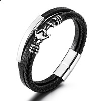 Vòng tay nam bằng thép không gỉ Mỏ neo có khóa nam châm Vòng đeo tay bằng da nhiều lớp Chiều dài 21cm Phong cách cổ điển