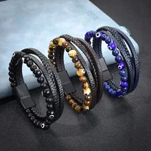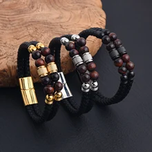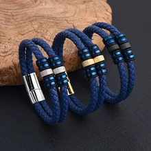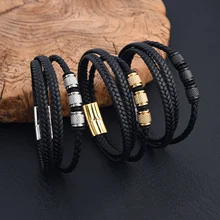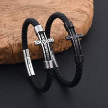 Fashion Braided Bracelet Set Stainless Steel Roman Numeral Bracelet Chain Cross Bracelet Set for Men