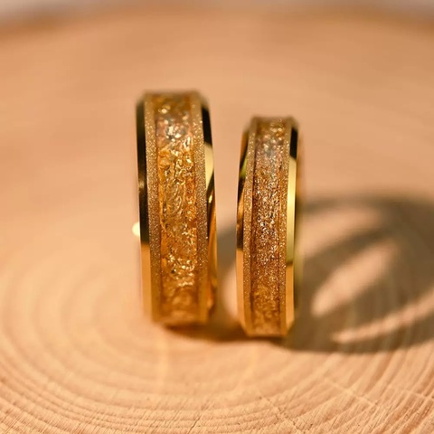 แหวนคู่รักลายทองคำเปลว6มม. แหวนแต่งงานสีทองแหวนทังสเตนสำหรับผู้ชายผู้หญิง