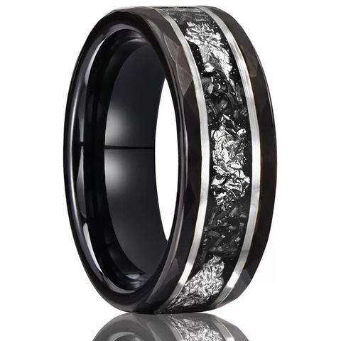 แหวนทังสเตนคาร์ไบด์ขัดด้วยค้อนแหวนแต่งงานผู้ชายแหวนทังสเตนชุบปืนสีดำเครื่องประดับผู้ชายแบบกำหนดเองสำหรับของขวัญหมั้น