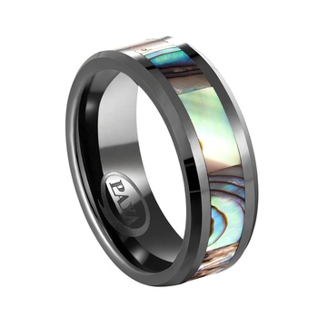 Toptan fiyat özel siyah kaplama seramik erkek yüzük Hawaii tarzı Abalone seramik yüzükler alyanslar takı